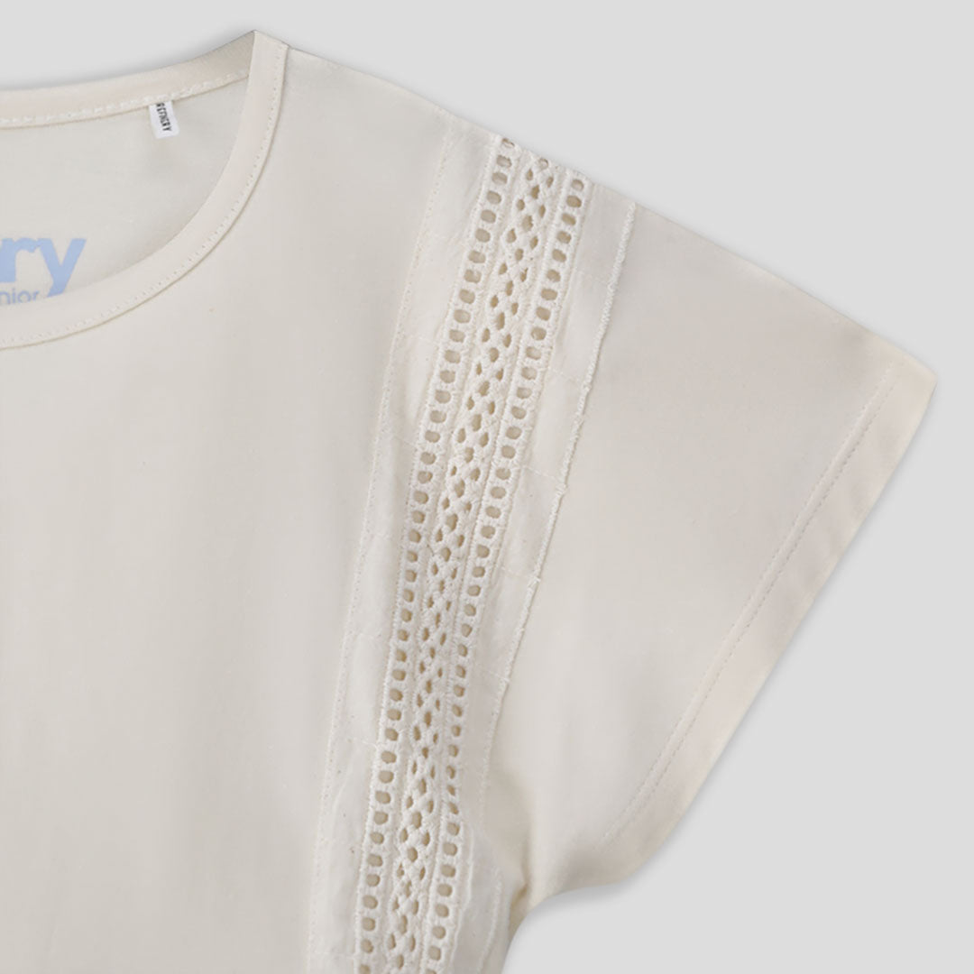 Stone peplum knit top with magyar sleeve and ladder lace.