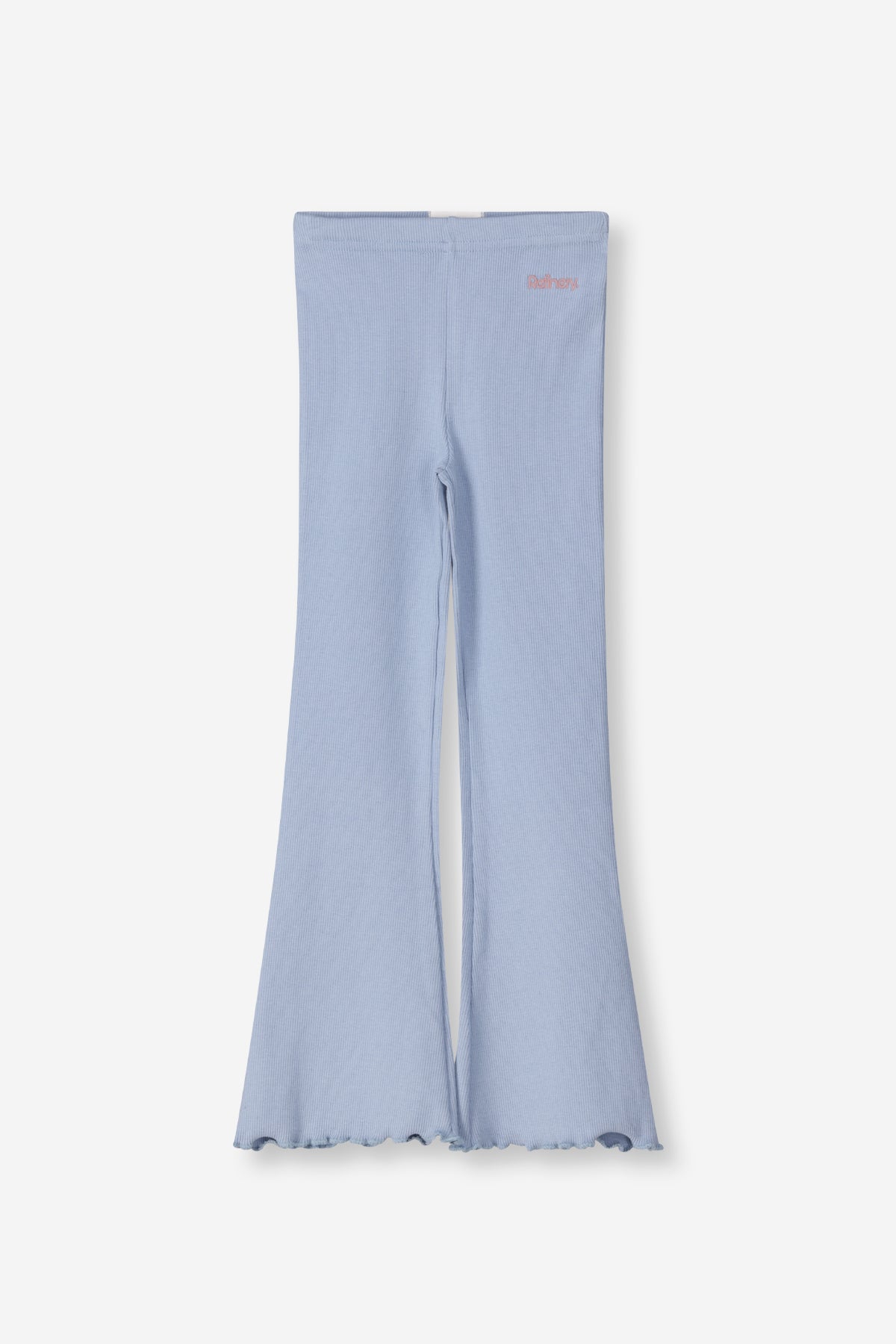 Denim blue ribbed flared leggings.