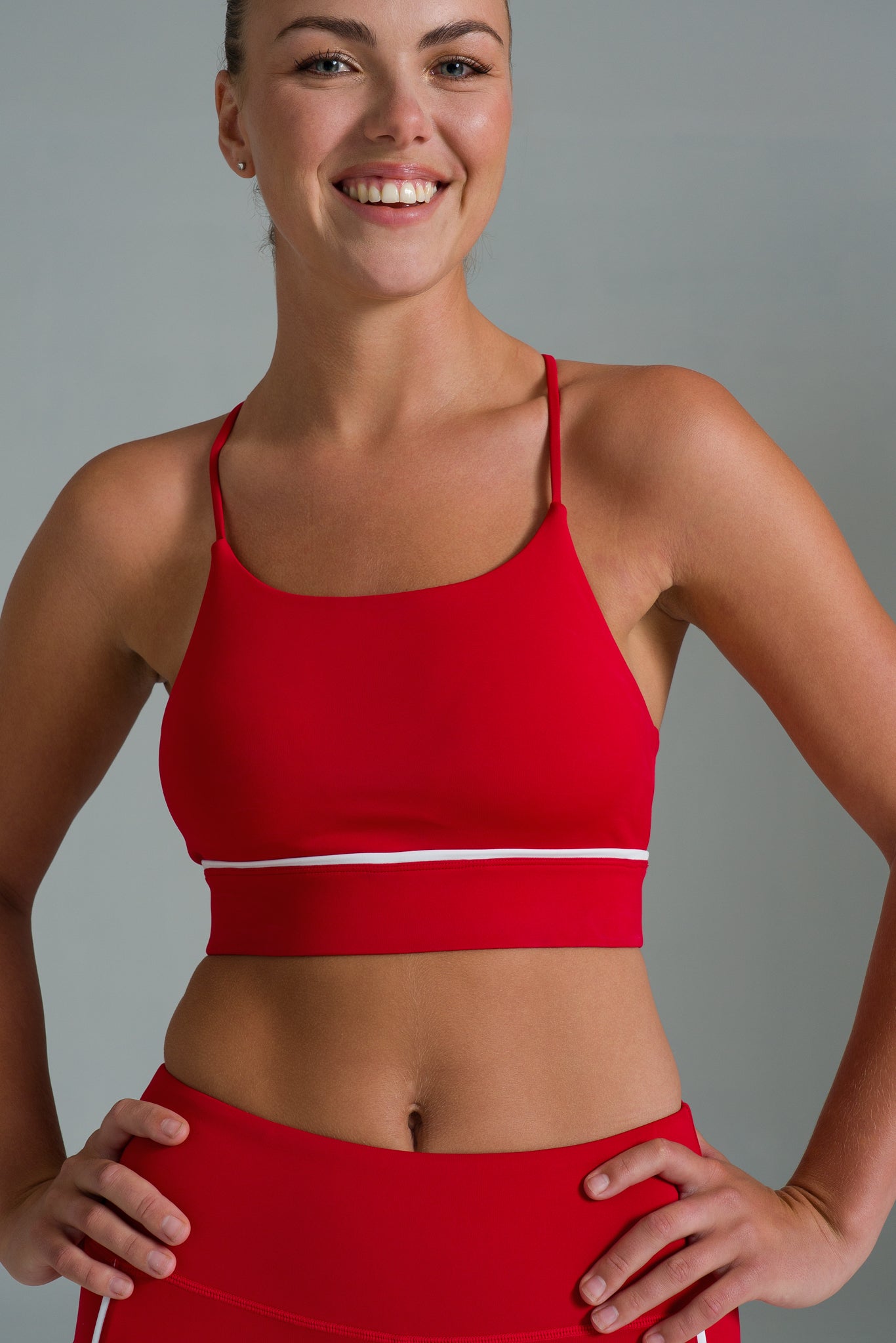 Designed with silky soft, breathable fabric and adaptive stretch, this bra provides light to medium support without restriction. Its seamless design ensures a smooth, second skin feel, keeping you comfortable through every stretch, step, and breath. The rounded scooped neckline and cross back straps are complemented by lightly padded, removable cups and an elastic under band for gentle support. Contrast binding details add a subtle style element, while moisture wicking properties and four way stretch allow for natural movement. Made from 80% polyester and 20% elastane, this bra is perfect for life in motion, from studio workouts and coffee catch ups to everyday wear.