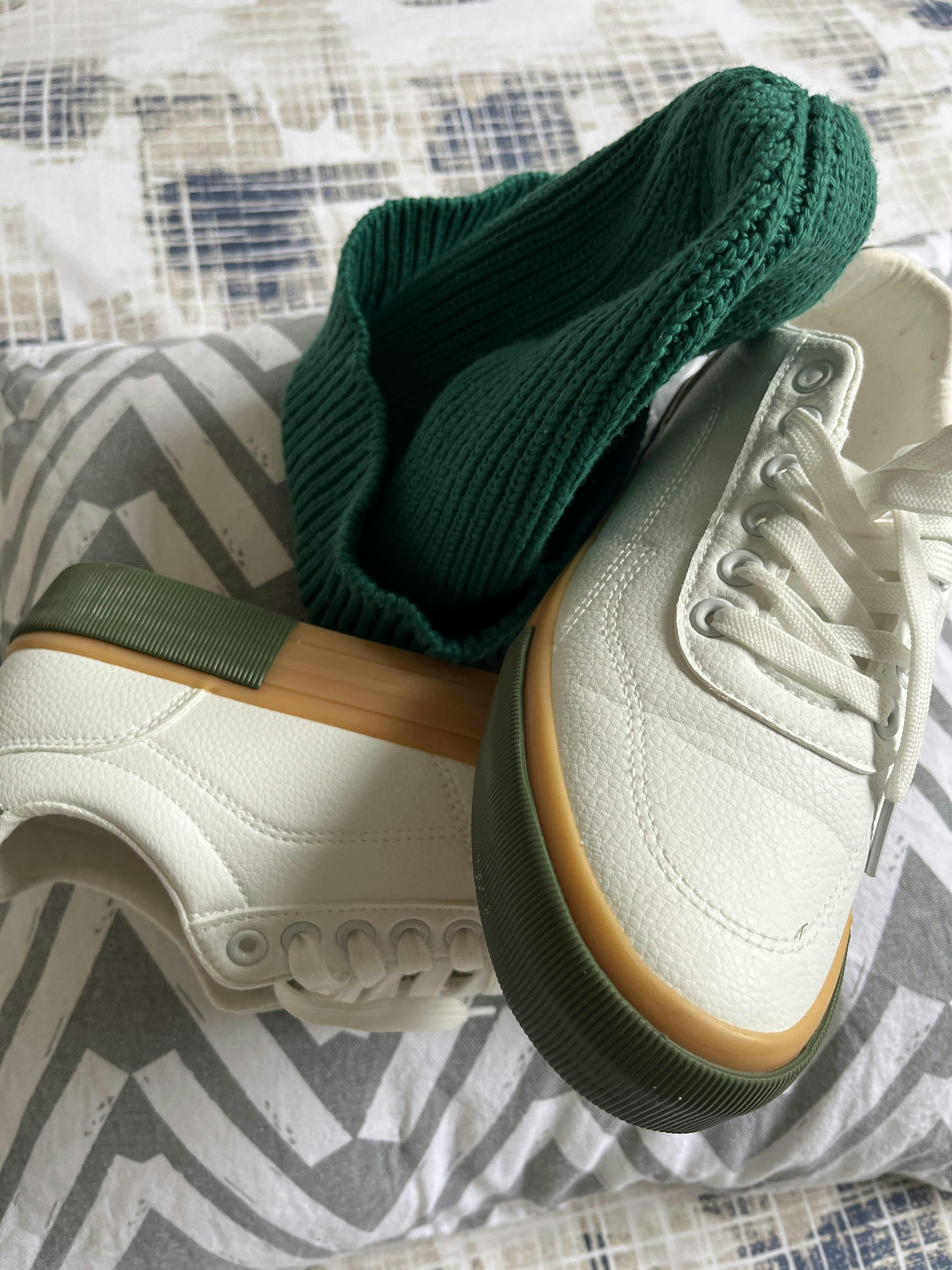 Ladies White Sneaker with Gum outsole.