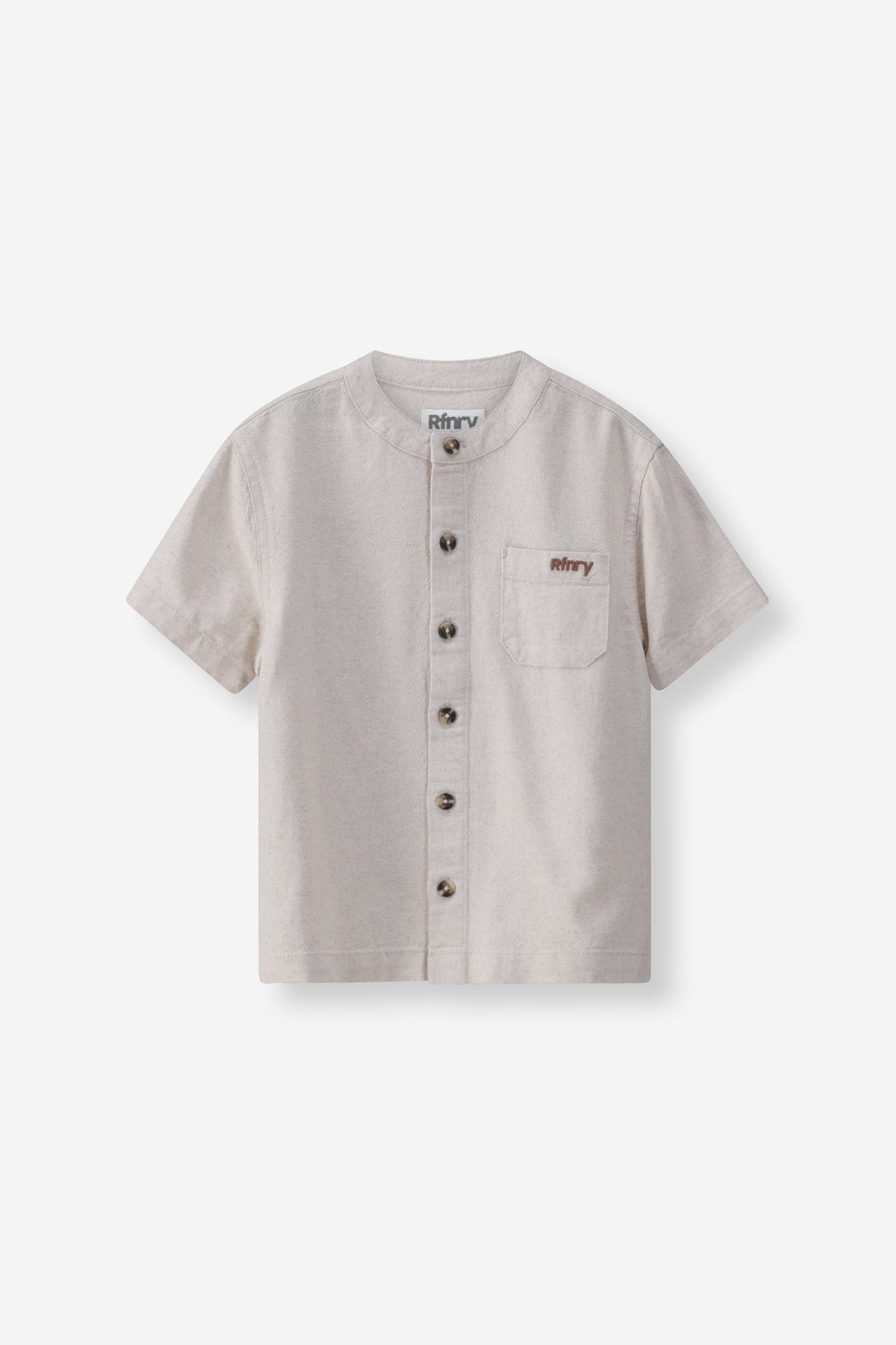 Linen blend short sleeve shirt with mandarin collar. - Regular fit - Glad-neck collar - Standard length - Patch pocket - 70% Viscose 30% Linen ,