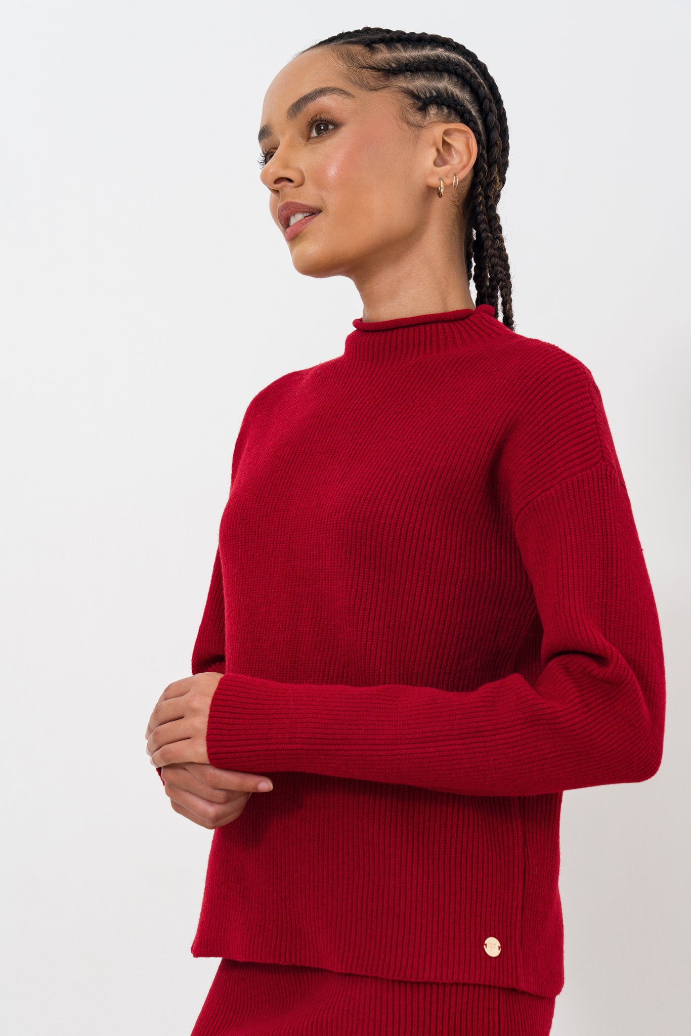 High neck rib jumper