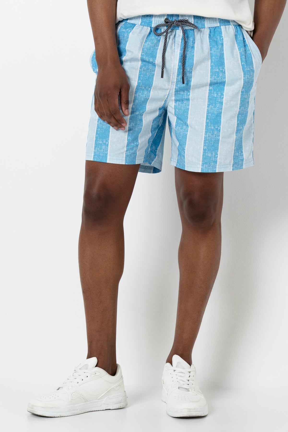 The blue stripe pool short is your perfect poolside essential. It has an elastic waistband that makes it easy to wear and comfortable.